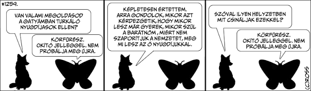 És most visszatért, öt évnyi kihagyás után újra követhetjük Róka, Lepke, Bari és a többiek kalandjait - pontosabban reflexiót az aktualitásokra. A legfrissebb számban Lepke reagál, teljesen önazonosan az elmúlt másfél év elképesztő történéseire. Saját felelősségre, erre tessék: 1270.